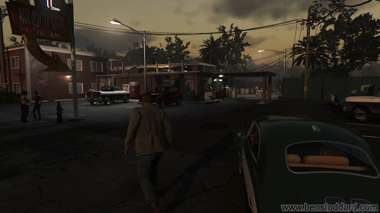 Ownership of this district was passed between several designers, resulting in me having worked on all activities in this district to some extent. I ended up owning the drug dealing racket and connected activities in this district. Most work was combat layout along with NPC performances.